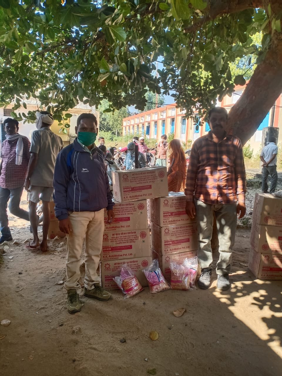 एक बॉक्स में 10 विद्यार्थियों के लिए सुखा राशन सामग्री प्राप्त हुई है