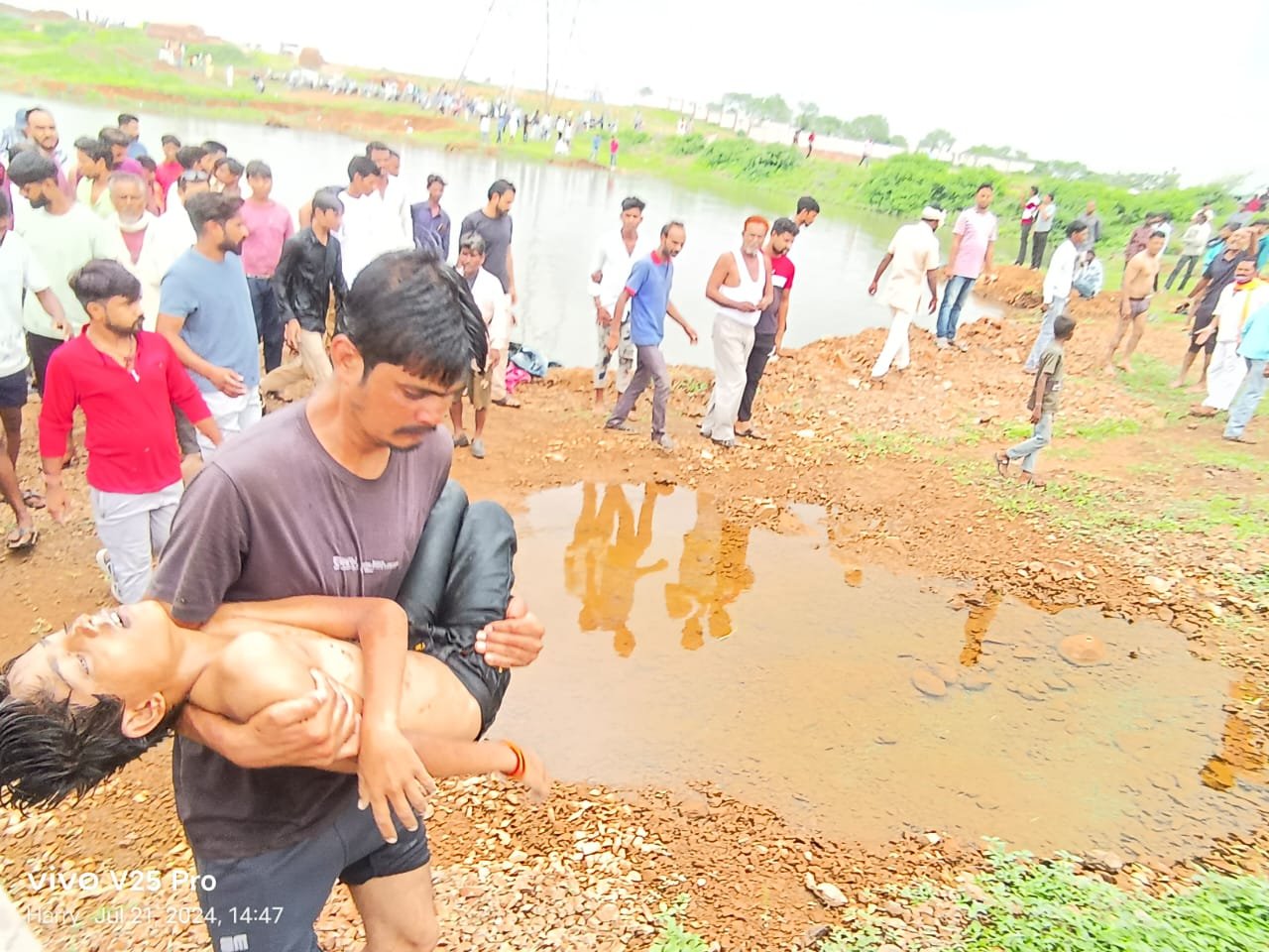 खवासा बायपास पर बने स्टेडियम पर आज कुछ दोस्त क्रिकेट खेलने गए। जिनमें से क्रिकेट खेलने के साथ तीन-चार नाबालिक दोस्तों ने विचार किया कि, स्टेडियम के पास ही खनती नुमा तालाब में भरे पानी में नहा ले और तीन-चार दोस्त खेल-खेल में ही नहाने चले गए ।जिसमें धन्नालाल मालवीय का करीब 13 वर्षीय पुत्र व ईश्वर बोरिया का करीब 15 वर्षीय पुत्र दोनों खनती में भरे पानी में अंदर तक चले गए और अचानक कहीं गड्ढा नुमा गहरे पानी में डूब गए। जब दोनों दोस्त पानी में से कुछ देर तक बाहर नहीं निकले तो साथी दोस्त डर गए। और रोते हुए जोर-जोर से चिल्ला चिल्लाकर आवाज लगाने लगे। कि हमारे दोस्त पानी में डूब गए। जिसके 5 से 10 मिनट बाद ही लोगों की भीड़ लग गई। वही स्थानीय कुछ युवकों ने दोनों बच्चों को बचाने हेतु तेरकर निकालने का प्रयास किया। जिसके बाद करीब 10 मिनट में तेरकर युवकों ने खनती के तह तक पानी में जाकर निकाला।