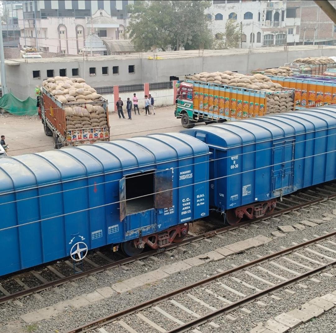 रेलवे अधिकारियों की सांठगांठ से ओवर लोड के साथ नियम विरुद्ध मालगाड़ी से लोड कर रहे खाद और गेहूं के ट्रक