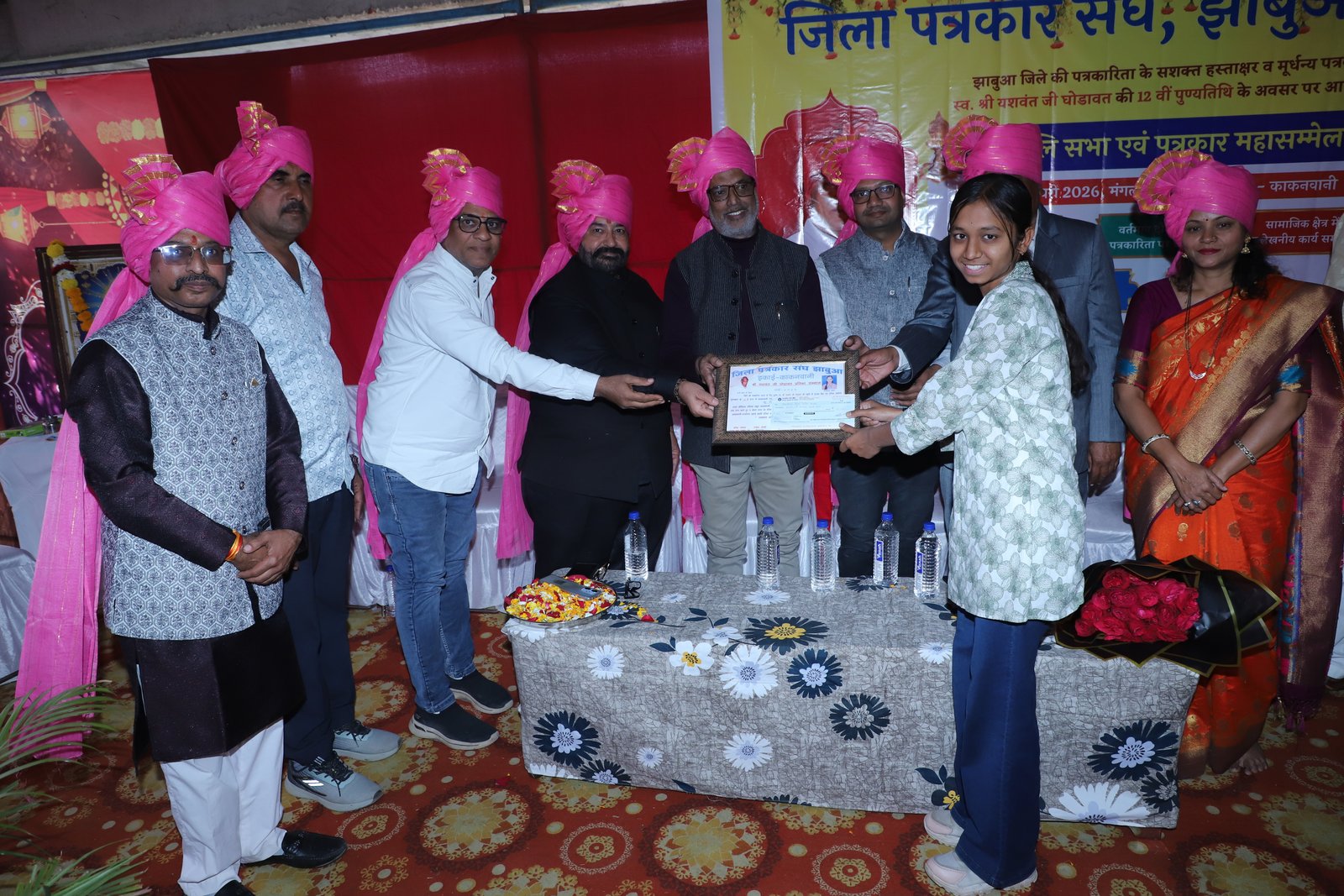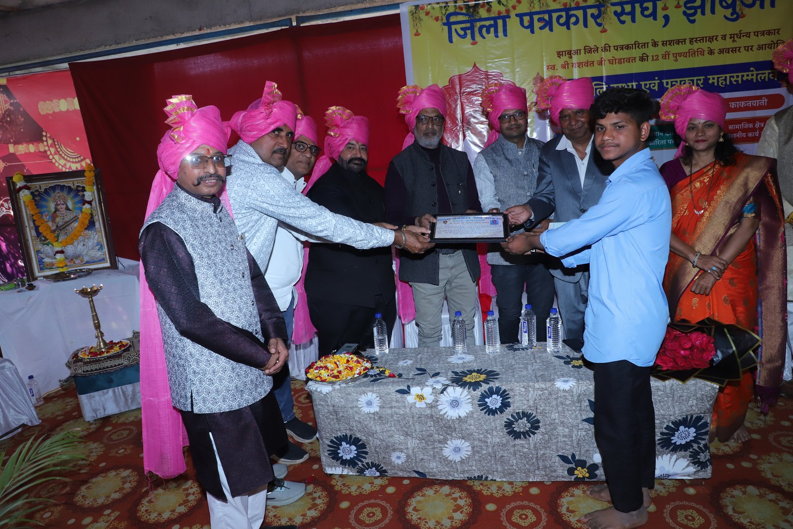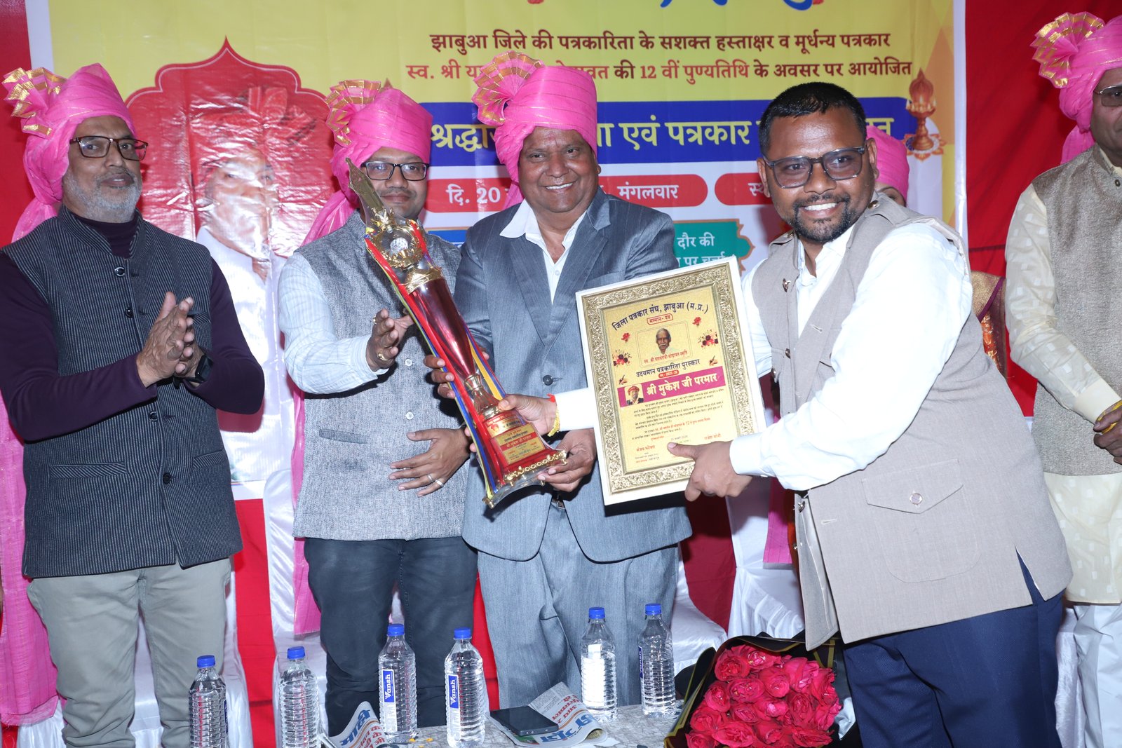 सम्मान की इस कडी में 2025-26 पत्रकारिता सम्मान से पत्रकारो का सम्मान किया गया। जिसमें सर्व कालिक सक्रिय पत्रकार पुरस्कार से संजय पी लोढा़ पेटलावद, उदयमान पत्रकारिता पुरस्कार से पत्रकार मुकेश परमार झाबुआ, आजीवन प्रखर पत्रकारिता पुरस्कार से वरिष्ठ पत्रकार दिनेश वैरागी परवलिया, सर्वकालिक संघर्षशील पत्रकारिता सम्मान (मरणोपरान्त) उक्त सम्मान से स्व. श्री कन्हैयालालजी पंचाल राणापुर को सम्मानीत किया गया। उक्त सम्मान स्व. कन्हैयालालजी पंचाल के सुपुत्र अर्जुन पंचाल व पोत्र को अतिथीयो द्वारा सम्मान देकर सम्मानीत किया गया।