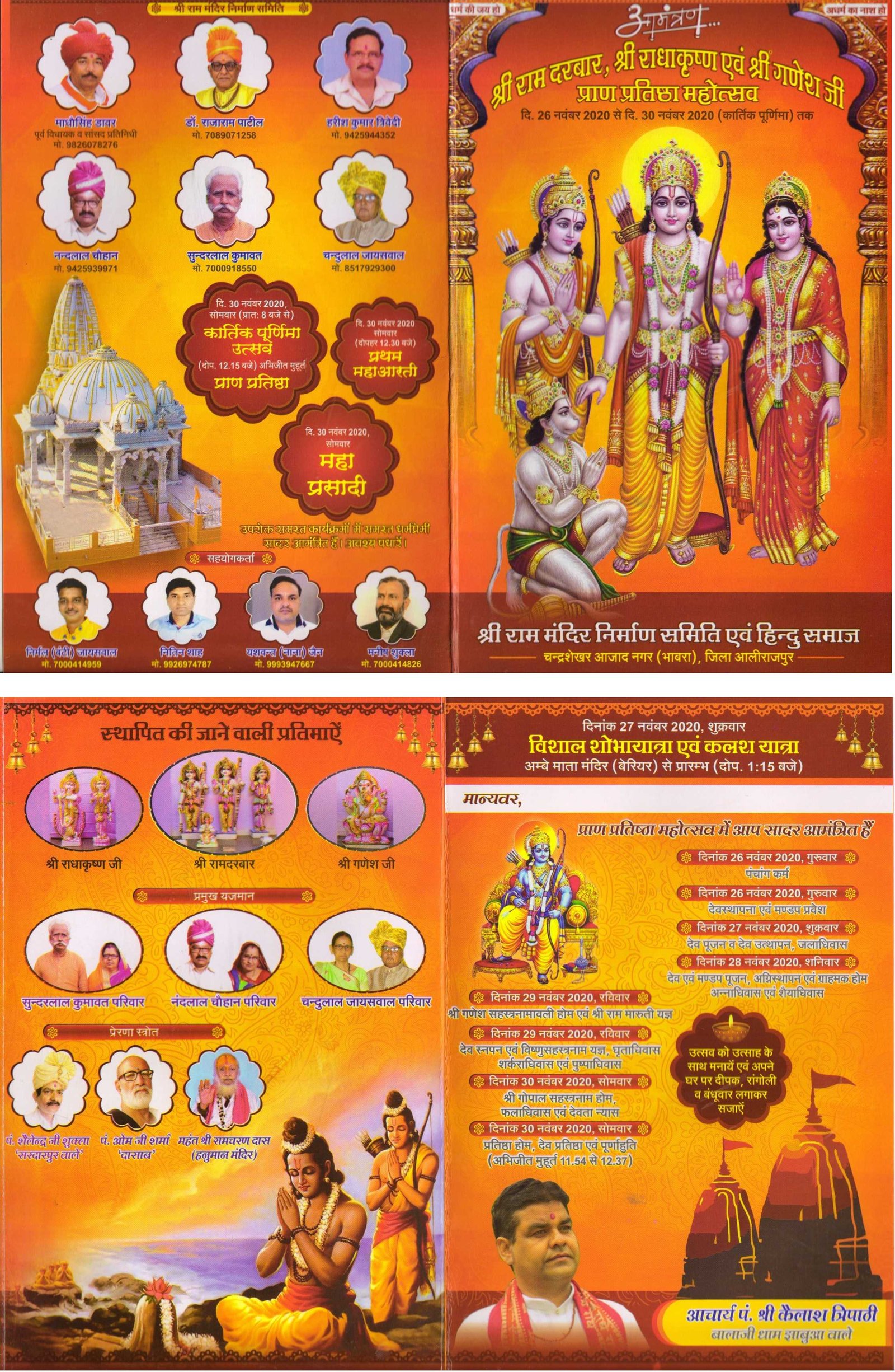 आखिरकार एक लंबे समय के साथ अलीराजपुर जिले के चंद्रशेखर आजाद नगर में रियासत के समय से नगर के मध्य स्थित रामलला के मंदिर का जीर्णोद्वार कर स्थानिय स्तर पर अपने आप में आधुनिक काल अनुरूप एक भव्य मंदिर का स्वरूप दिया गया।